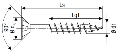 Art. Senkkopf -Spanplattenschrauben Fräsrippen, Schneidkerbe, Innensechsrund (TX)